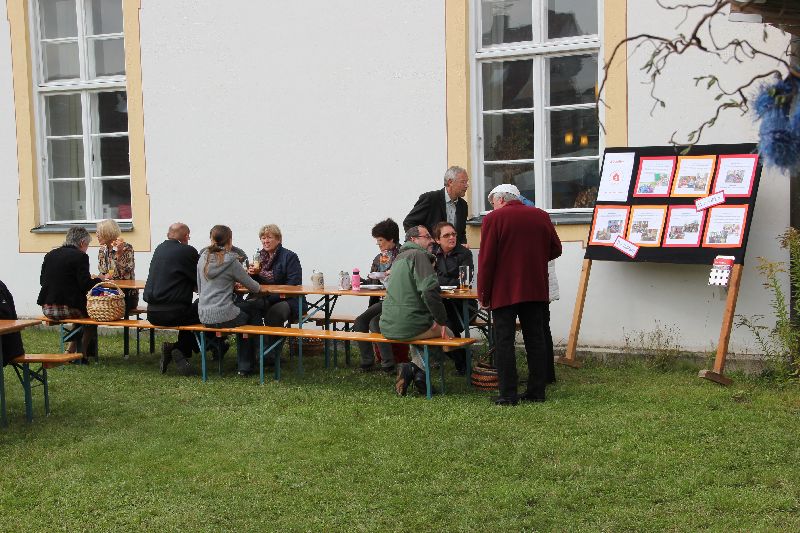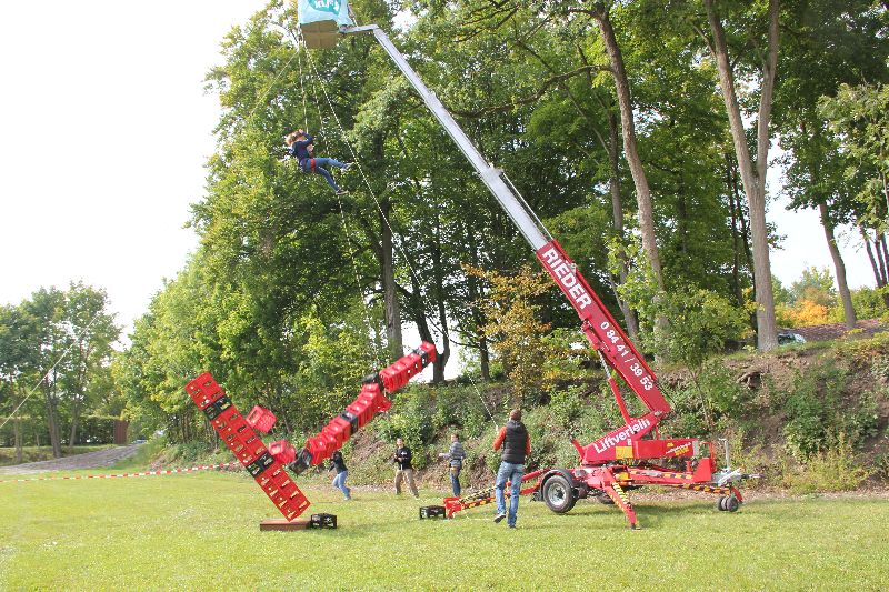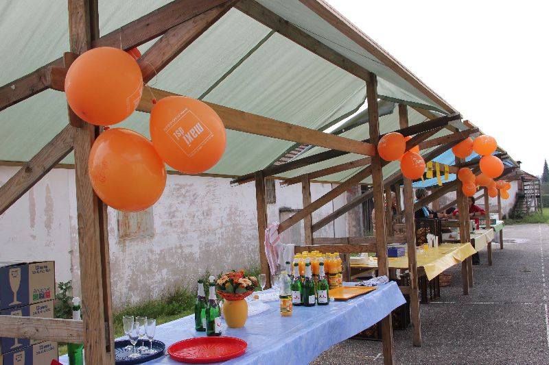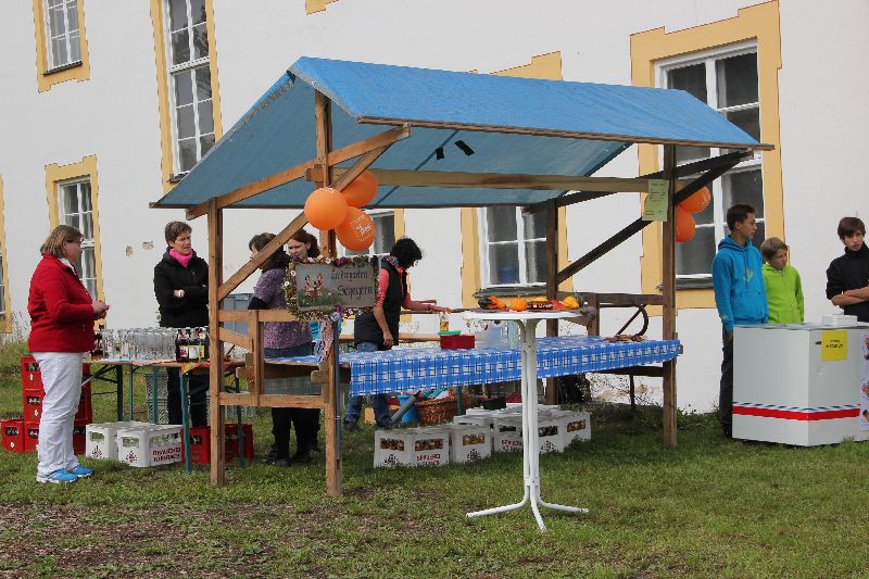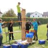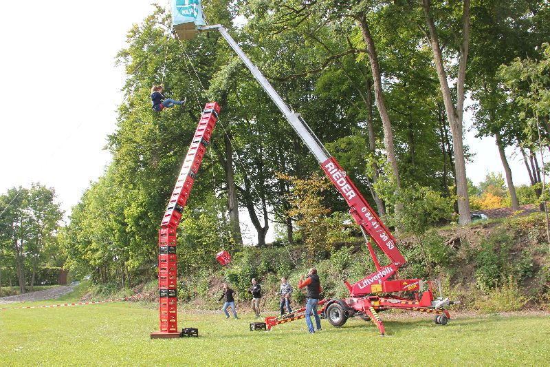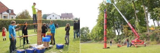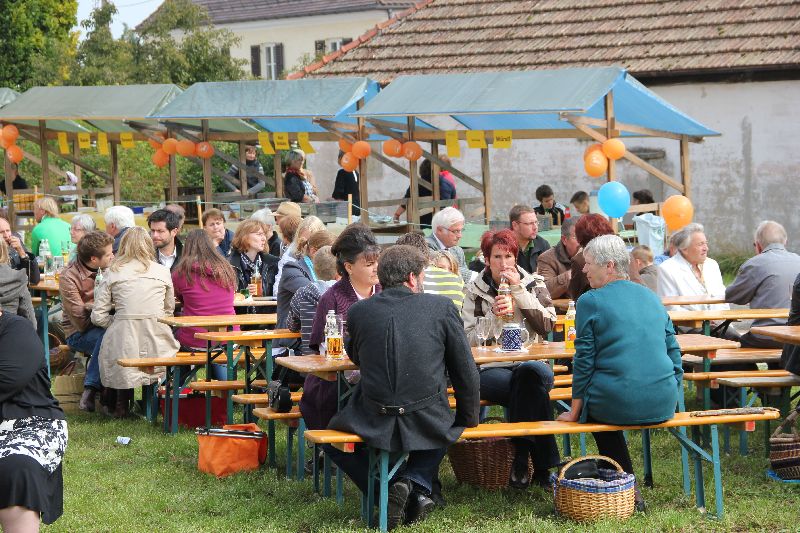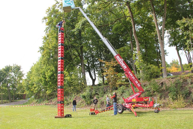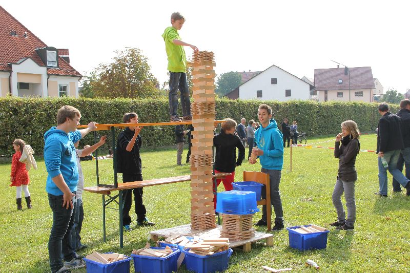 Neben diversen Verköstigungen zur Mittagszeit und anschließend bei Kaffee und Kuchen war eigentlich für jeden etwas Unterhaltsames geboten. Die Kinder freuten sich über eine Hüpfburg oder den Kinder-Flohmarkt, Jugendliche bauten Holztürme bis in ungeahnte Höhen und trugen einen Wettbewerb im Biertragerl-Klettern aus. 32 Kisten war bei diesem Wettbewerb der Rekord am Sonntagnachmittag. Das ist schon verdammt gut, bedenkt man, dass das bis kurz unter die Spitze des sichernden Krans ging! Für die Leseratten unter den Besuchern gab es einen Bücherbasar und wer einfach nur bei einer Tasse Kaffee im geschützten Garten sitzen und mit Freunden oder Nachbarn ratschen wollte, der kam gewiss auch auf seine Kosten.