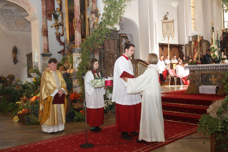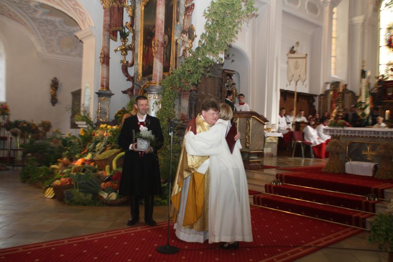 Ein Wunder der Schöpfung, das man nicht aus den Augen verlieren sollte. Doch nicht nur für die gute Ernte galt es, dem Herrn zu danken. „Seit über 60 Jahren leben wir hier in Deutschland in Eintracht und Harmonie“, so Pfarrer Johann Braun. Ein hohes Gut, wenn man den Blick über die gesamte Welt schweifen lässt. So galt das herzliche „Vergelt’s Gott“ eben nicht nur dem reich geschmückten Gabenaltar, sondern auch dem Frieden.