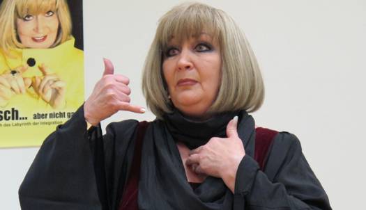 Passend zum Thema bekamen die zahlreichen Besucher eine kleine Kostprobe der Schauspielerin und Theaterregisseurin Lilia Tetslau. Die in Sibirien geborene und seit 21 Jahren in Deutschland lebende Kabarettistin, nimmt sich auf humoristische Weise diesem Problem an.