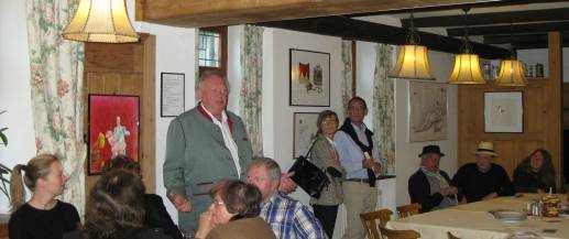 Dann also doch die Weißwürste, frisch aus dem Kessel, und so ergaben sich auf der Terrasse beim erfrischenden Weibier noch anregende Gespräche über Vergangenes, Gegenwärtiges und Zukünftiges: Denn neben Professor Gerd Dengler und Reiner Zimnik nutzten auch Professor Gerhard Berger, Professor Karl Schlamminger und der Cartoonist Michael Heininger die Zeidlmaiersche Gelegenheit, dem Künstlerkollegen bei Weißwurst, Kunst und Sonnenschein die gebührende Ehre zu erweisen – und natürlich, aber nicht allein, Karl Zeidlmaier, der mit der Klama-Ausstellung eine weitere Perle in sein Kulturprogramm gefügt hat.