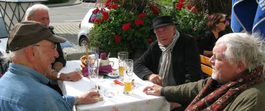Künstler unter sich: Prof. Gerhard Berger, Michael Heininger (verdeckt), Dieter Klama und Prof. Karl Schlamminger auf der Terrasse beim Zeidlmaier
