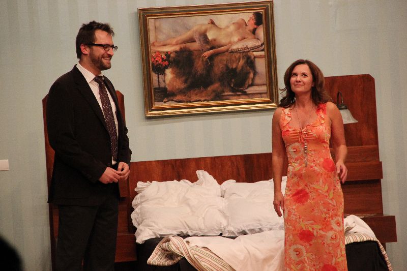 Sie haben nichts verstanden? Macht nichts. Derartige Beziehungsgeflechte sind ja fast schon Standard in Boulevardkomödien und produzieren natürlich eine überraschende Situation nach der anderen. Zumal das Stück in einem Hotelzimmer spielt, in dem Georg und Veronika eigentlich ihre Silberne Hochzeit feiern wollten. Im Zimmer nebenan - mit Verbindungstür, die nicht verschlossen werden kann - wohnt? Natürlich Valerie, Georgs Geliebte.
