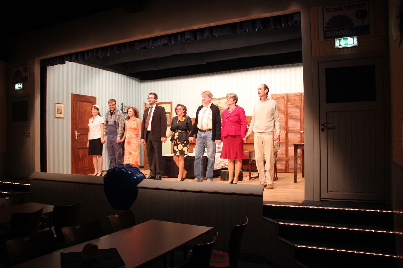 Fazit: ein tolles Stück, super inszeniert und mit ausgezeichneten Schauspielern ideal besetzt. Einziger Wehrmutstropfen: wer sich jetzt überlegt, eine Aufführung besuchen zu wollen, muss sich ziemlich sputen, denn die Termine sind schon fast ausverkauft. Infos gibt es auf der Homepage der Scheyerer Bühne.