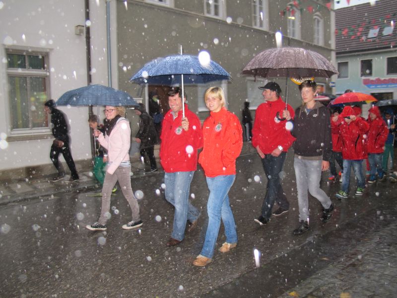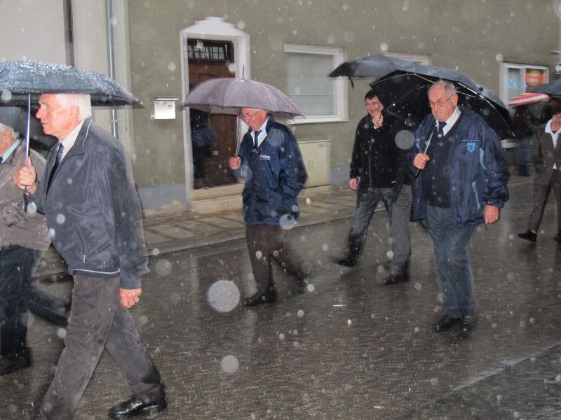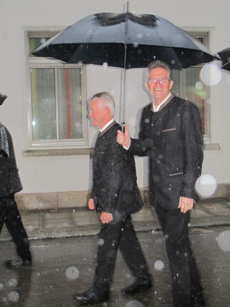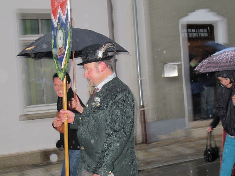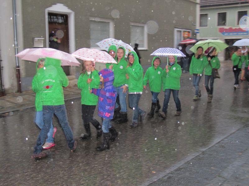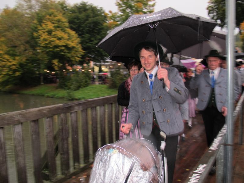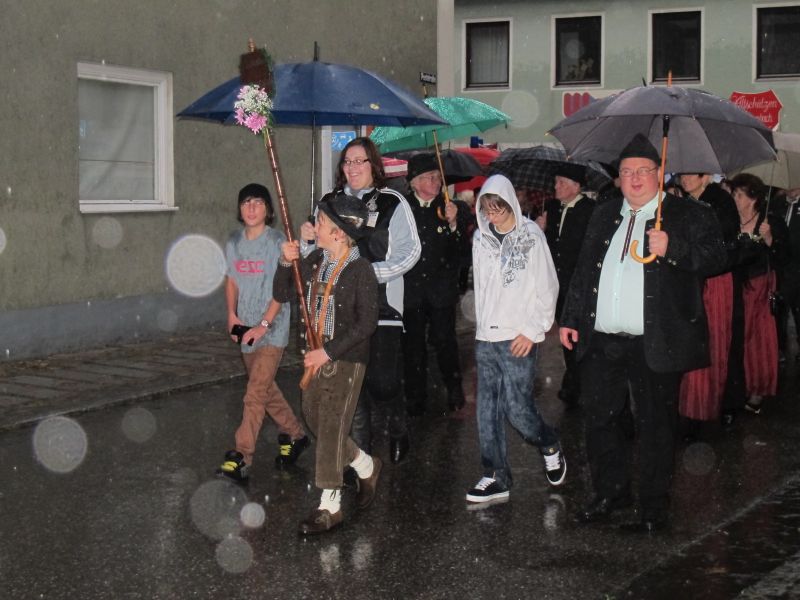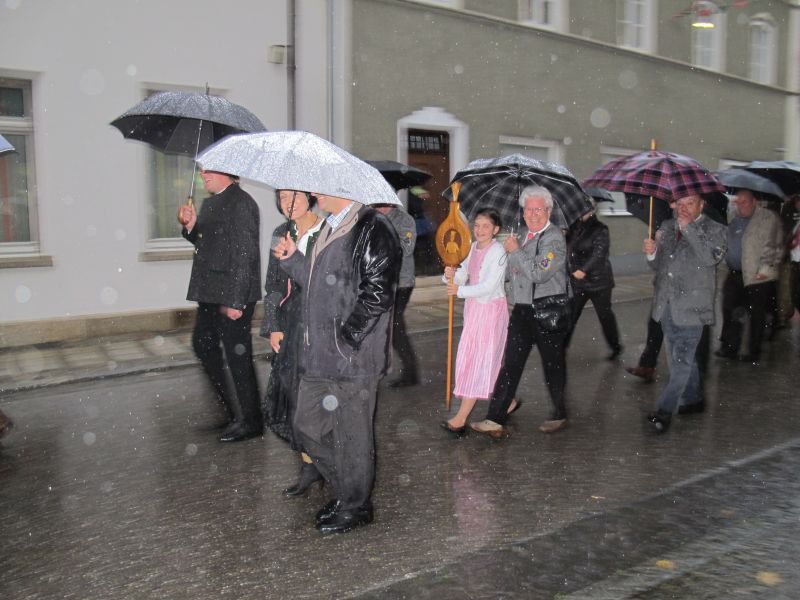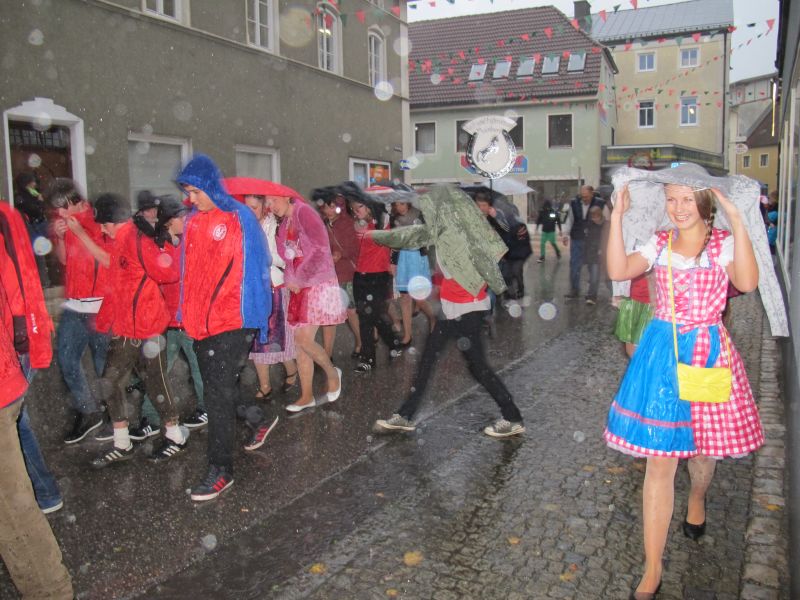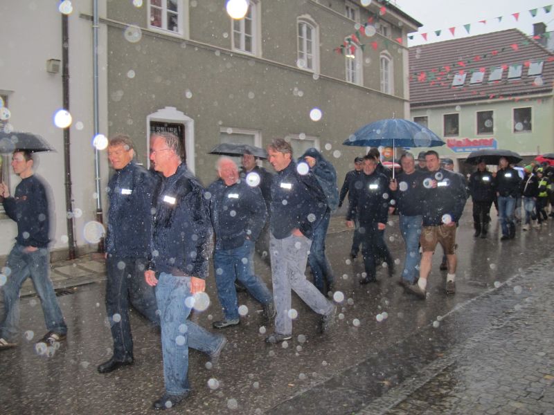 Monsunartige Regenfälle setzten kurz nach Beginn des Ausmarsches ein, was die zahlreichen Vereine aber nicht abschreckte. Mit Regenschirmen bewaffnet setzten sie unbeirrt ihren Marsch durch die Mainburger Innenstadt fort, nur in einem etwas schnelleren Tempo.