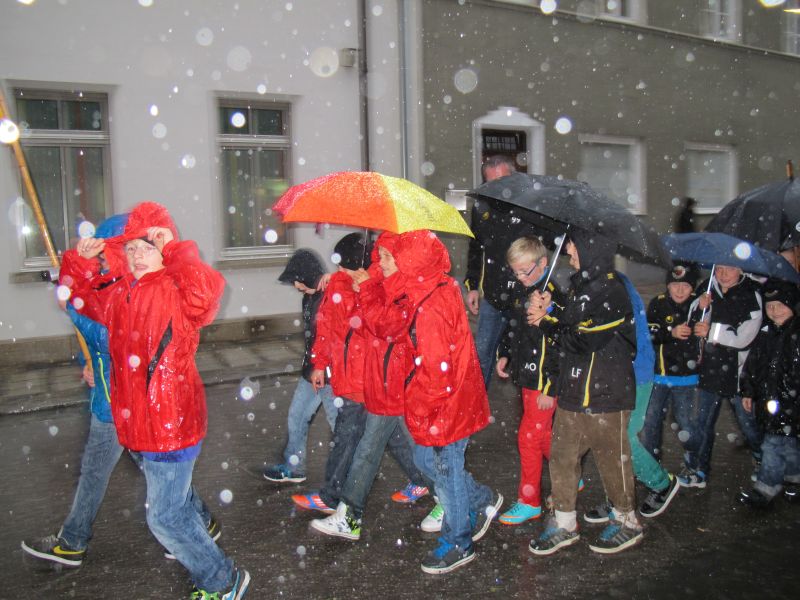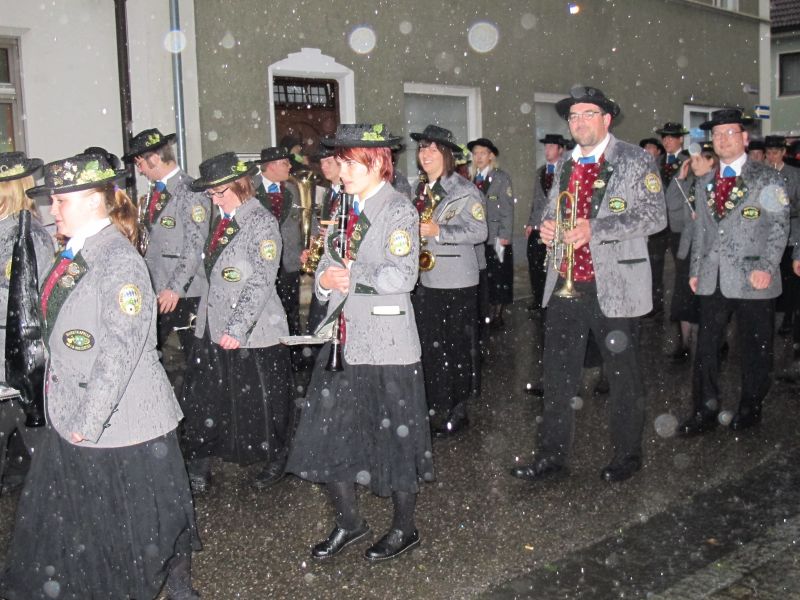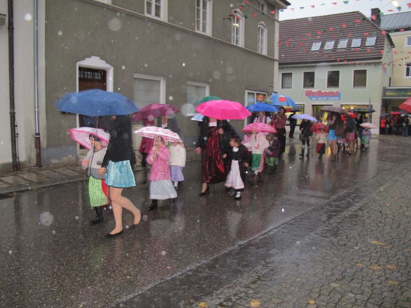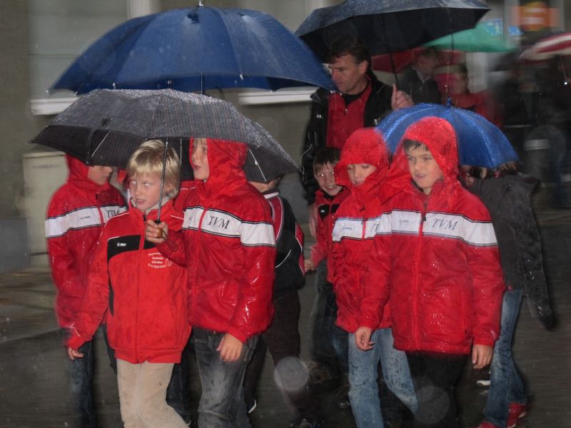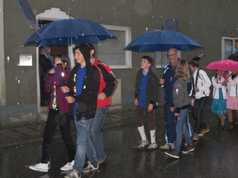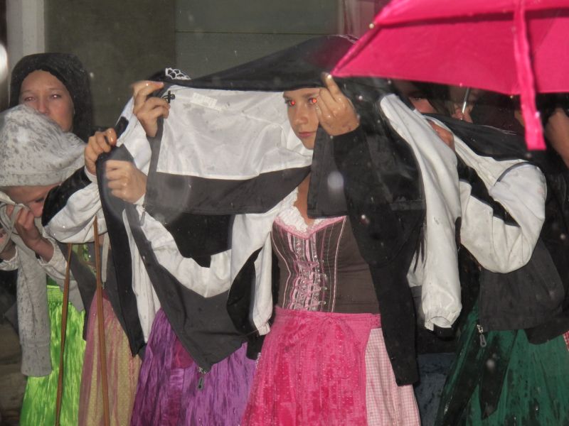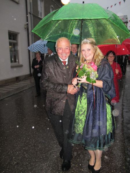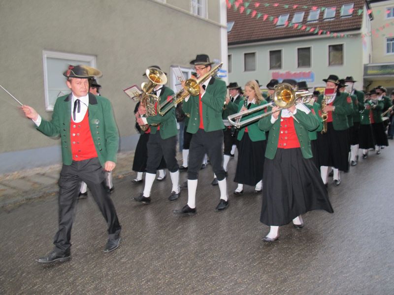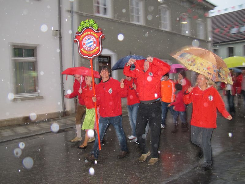 Monsunartige Regenfälle setzten kurz nach Beginn des Ausmarsches ein, was die zahlreichen Vereine aber nicht abschreckte. Mit Regenschirmen bewaffnet setzten sie unbeirrt ihren Marsch durch die Mainburger Innenstadt fort, nur in einem etwas schnelleren Tempo.