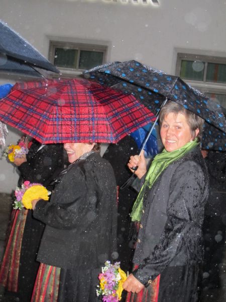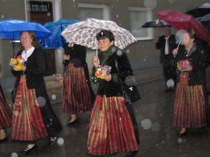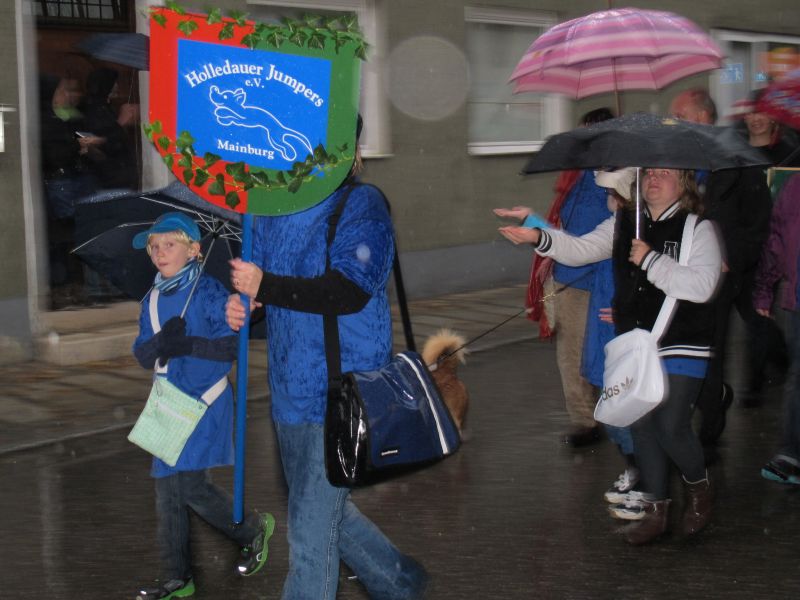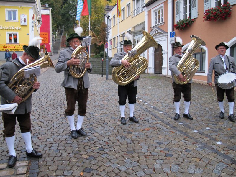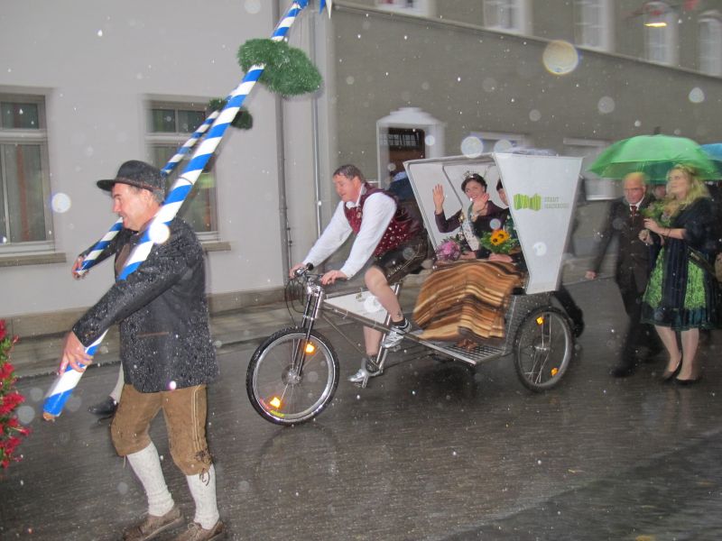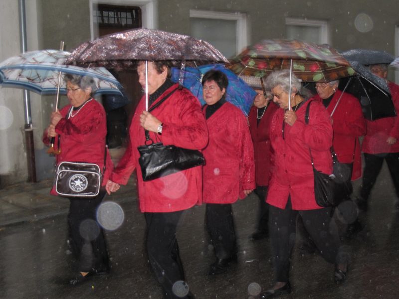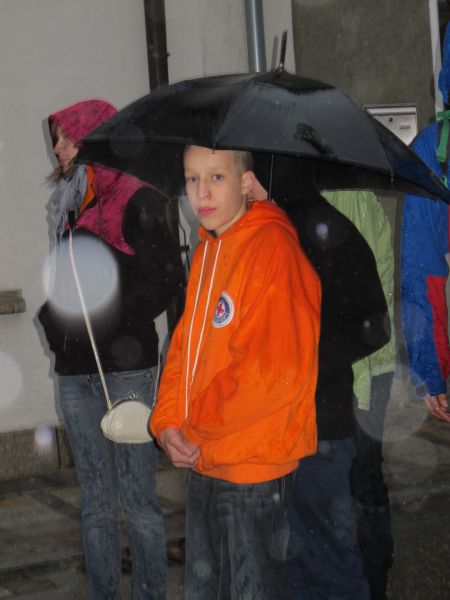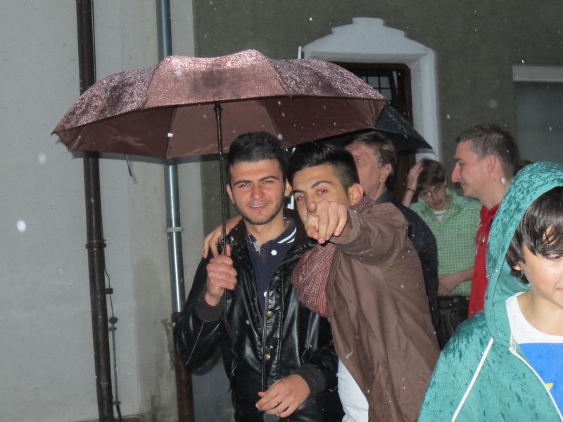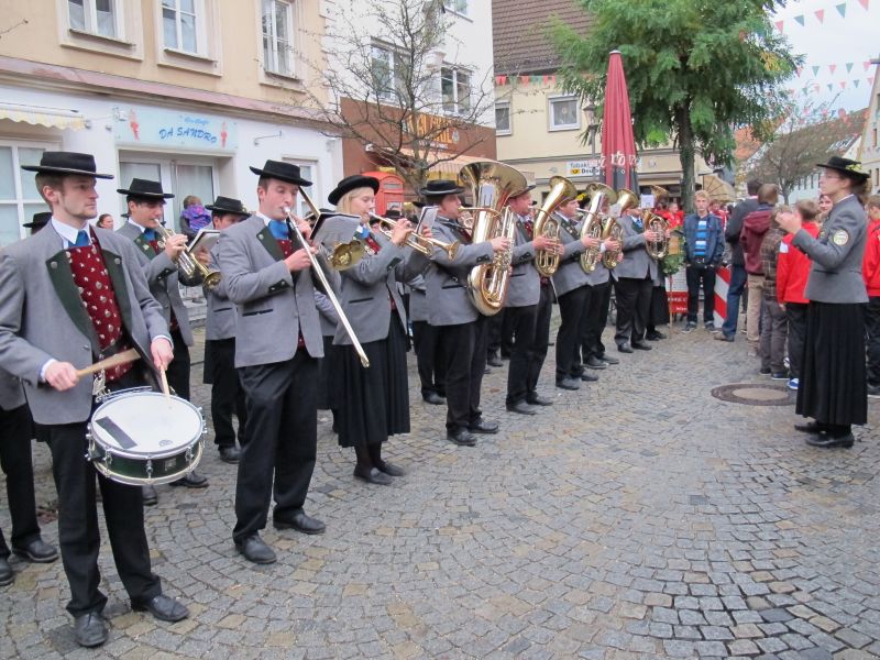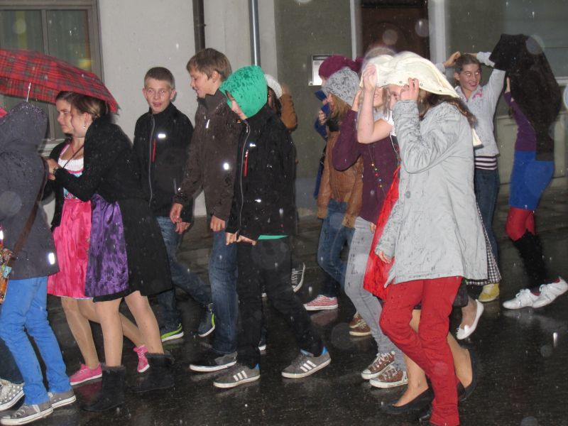 Monsunartige Regenfälle setzten kurz nach Beginn des Ausmarsches ein, was die zahlreichen Vereine aber nicht abschreckte. Mit Regenschirmen bewaffnet setzten sie unbeirrt ihren Marsch durch die Mainburger Innenstadt fort, nur in einem etwas schnelleren Tempo.