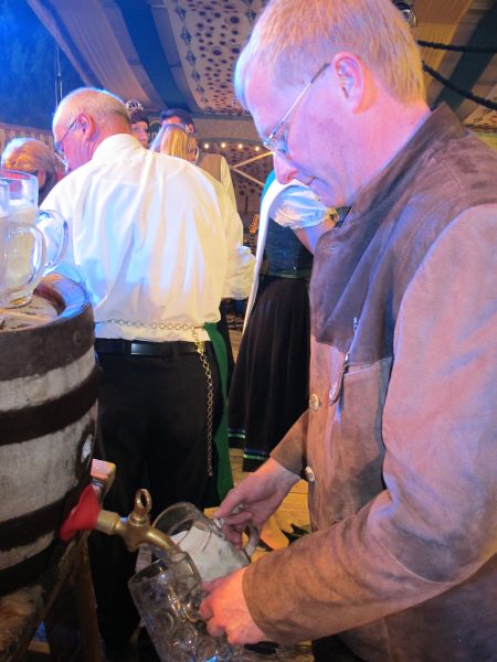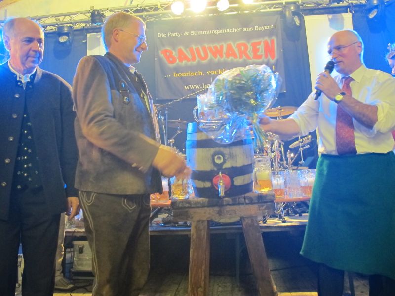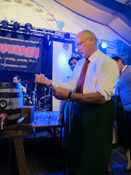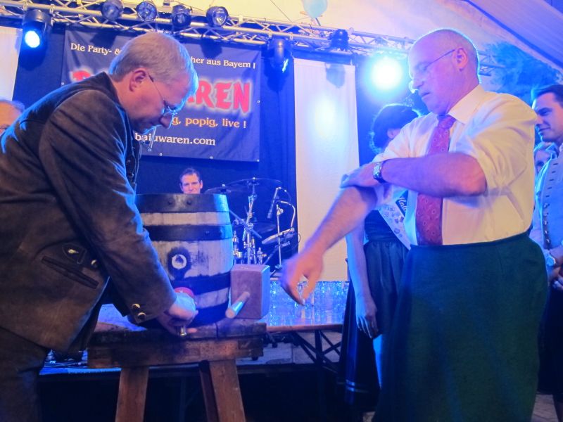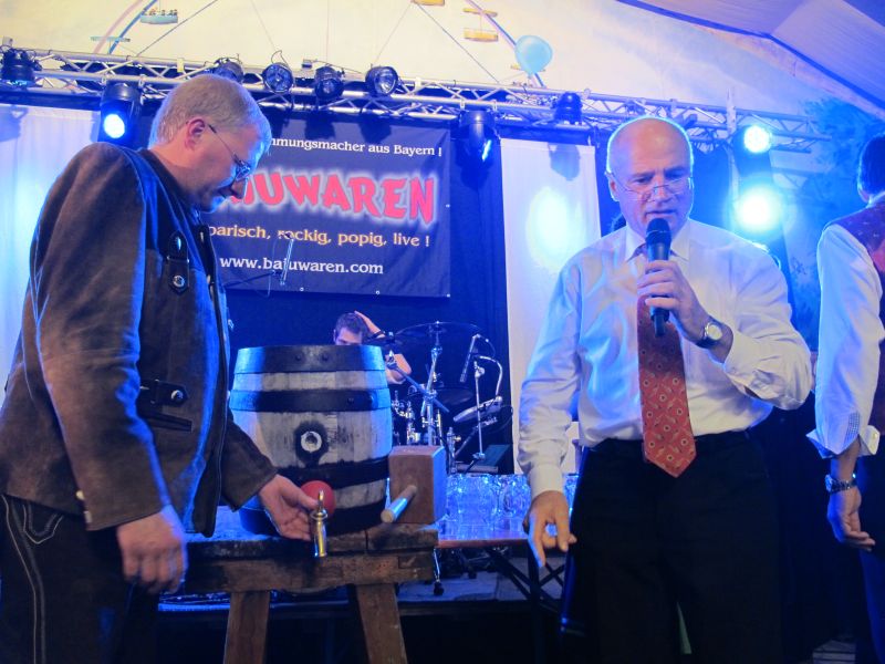 Die Stimmung war jedoch trotz der Hitze und der nassen Kleidung ausgezeichnet und die erste Zieglerbier Maß schmeckte wie immer. Bürgermeister Josef Reiser machte den traditionellen Bieranstich und schon nach dem dritten Schlag war es vollbracht.