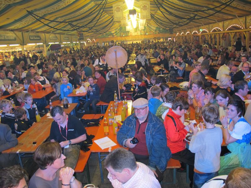 Das Gedränge im Widmann Festzelt war dementsprechend groß, so dass kaum noch ein Durchkommen war. In dem warmen Zelt, mit den hunderten nassen Volkfestbesuchern dampfte es schon nach kurzer Zeit wie in einer finnischen Sauna.