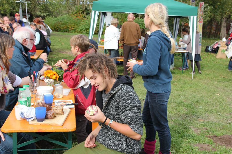 Strohpuppen wurden unter Anleitung gebastelt, man konnte an einem Marmelden-Geschmackstest teilnehmen oder auch selber Butter herstellen und anschließend auf einem frischen Brot genießen. Die Veranstaltung bot wirklich Abwechslung für jedermann und lud Gäste, aber auch zufällig vorbeikommende Spaziergänger an diesem herrlichen Sonntagnachmittag zum Verweilen ein.