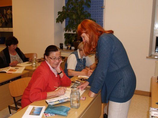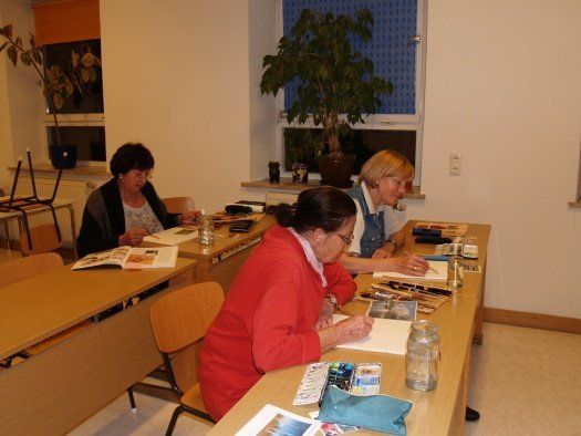 Die Kursteilnehmer versuchen Eindrücke mit Farben auszudrücken, nebenbei können sie sich mit Farbenlehre und Komposition auseinandersetzen und zu ihrem eigenen Malstil finden. Viele Menschen unterschätzen ihre künstlerischen Fähigkeiten und mit ein paar Tipps und Tricks kann jeder malen versichert die Kursleiterin Lia Köhnlein. In ihrem Kurs sind momentan 6 Teilnehmer und um Zuwachs würde sie sich sehr freuen.
