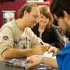Wer denkt, dort werden nur herkömmliche Bücher ausgestellt, der täuscht sich. Vor allem Zubehör wie Leselampen, Lesezeichen, Lesehilfen und Geschenkartikel reihten sich zwischen Duden, Heyne und Ravensburger ein. Eine gelungene Abwechslung – das Auge spricht und man lässt sich von bunten Farben faszinieren. Nebenan ein Autor, der den Kindern aus seinem Buch Geschichten vorliest. Kinder- und Jugendbücher waren ebenso groß angesiedelt wie Fachbücher und Romane. Und wer mal eben ein Foto mit der Maus machen wollte, schaute am besten beim Stand des WDR vorbei.