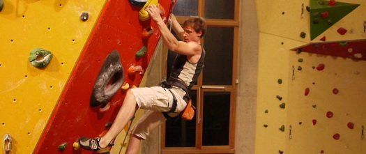 Schon ab 11 Uhr legten sich die ersten Teilnehmer konzentriert ihren Plan zurecht, wie in vier Stunden Qualifikationszeit möglichst viele Punkte gesammelt werden können. Je schwerer die Route, desto mehr Punkte. Beim Start der Qualifikation um 13 Uhr gings richtig zur Sache. 65 Teilnehmer stürmten die Wand und manche zogen die Schuhe und den Gurt wirklich erst wieder Punkt 17 Uhr aus.