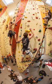 Mit unglaublichen 40 gekletterten Routen war Franz Schönauer nicht nur unter den Besten sondern auch der fleißigste Kletterer des Tages. Nach der Quali konnten alle Teilnehmer bei der Verlosung hochwertige Preise wie Rucksäcke, Gurte oder Schuhe gewinnen. In der Zwischenzeit ratterten im improvisierten Wettkampfbüro von Chef-Schrauber und Wettkampfleiter Robert Dick die Rechenmaschinen,
