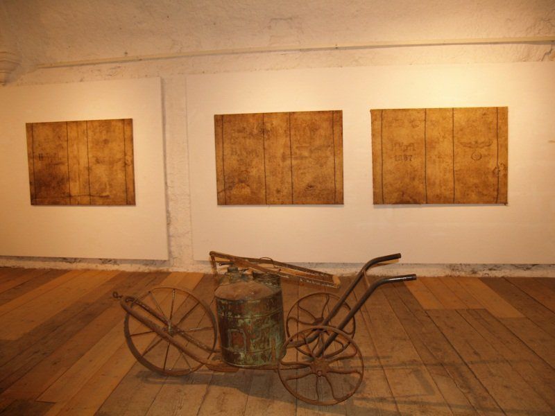 Ein Besuch der aktuellen Ausstellung „Holledauer Geschichten II“ in der Harderbastei in Ingolstadt lässt uns Spuren die das Leben in der Hallertau hinterlässt aus einem anderen Blickwinkel betrachten, lädt zum Nachdenken, Träumen und Suchen ein. Spuren der Arbeit, Spuren des Lebens und Spuren der Liebe zur Hallertau lassen die beiden Künstler den Betrachter neu entdecken. Spuren die Geschichten schreiben und oftmals von vergänglicher Schönheit sind. Lassen Sie sich von den beiden Künstlern verführen und Sie werden ab sofort mit anderen Augen durchs Leben gehen. Phantasievoll, vielfach mit einem Augenzwinkern aber auch mit einem kritischen Blick in die Vergangenheit zeigen sie Spuren unseres Lebens und die unserer Vorfahren. Die Künstler selbst hinterlassen Spuren in unseren Gedanken und unseren Herzen und faszinieren mit völlig neuen Techniken und Ideen. Ganz besonders beeindruckend sind die Bürstendrucke von Thomas Neumaier und Bilder wie das Wolkenquartett von Hans Dollinger. Diese Kunstwerke entstehen mit Hilfe einer alten Hopfenpresse. Gearbeitet wird sowohl mit Spuren, zum Beispiel die eines Traktor, die ausgegossen und gebrannt werden, aber auch mit Fundstücken, wie zum Beispiel ein achtlos liegengelassenes Hopfendrahtknäuel, alte Hopfensäcke, eine alte Schreibmaschine deren einzige Tasten das Wort Hallertau schreiben, das „Schinkenbügelobjekt“ - Fragmente von Traktorspuren auf Kleiderbügel die schon beim ersten Blick ihr Geheimnis preisgeben (Geräuchertes am Haken) oder aus Ton gearbeitet kleine Hopfenhackl die bei genauerer Betrachtung und mit der nötigen Fantasie zum Leben erwachen und kleine Geschichten erzählen können – selbstverständlich nur Holledauer Geschichten!