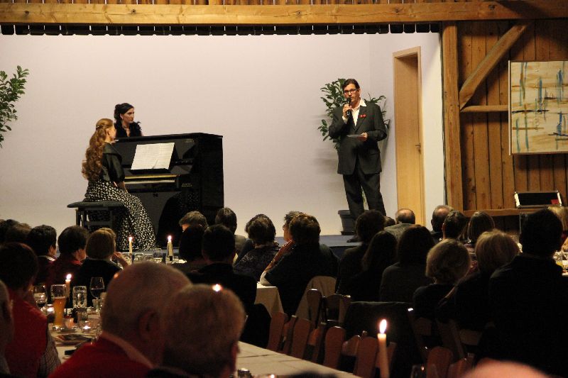 Sonntagabend ist erfahrungsgemäß nicht der beste Veranstaltungstermin. Operette und Musical im Stockerhof? Scheint gefühlsmäßig zunächst nicht so recht zusammen zu passen. Aber allen Unkenrufen zum Trotz: Mehr als 80 Besucher kamen zur Premiere dieses neuen Formats an dieser Stätte. Und das Kommen hat garantiert niemand bereut. Ein überaus nettes Ambiente, gutes Essen an herbstlich romantisch dekorierten Tischen, eine unverkrampfte Atmosphäre und zuguterletzt auch eine gute Akkustik. Es hat alles gepasst am Sonntagabend.