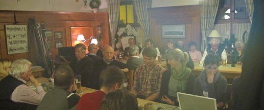 Denn 2002 wurde eine große Rückschau gehalten, die die Gründungszeit verklärte. Damals zierten alte Skier die Feier, die auch heuer in kleiner Anzahl an der Wand des Post-Nebenzimmers lehnten. Markus Zimmermann lieferte die Bilder des Rückblicks 2002-12, Peter Siegmund verlas die Ereignisse chronologisch. Auch ältere Videos wie z.B. ein Rennen 1993 in Schladming ratterten über die Leinwand.