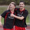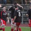 Die Wolnzacher Spieler Florian Flicker und Bilal Rihani jubeln zum 1:0 (links), Schweitenkirchen kämpft weiter (rechts)