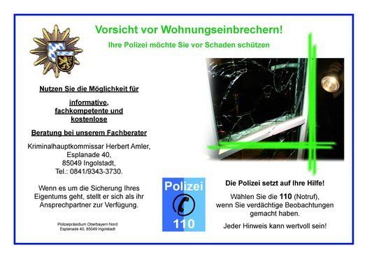 Erst vor kurzem konnte in Scheyern eine entsprechende Tat vereitelt und der Täter verhaftet werden. „Diesen Erfolg verdanken wir vor allem dem couragierten Einschreiten eines Bürgers zu verdanken“, so Zieglmeier weiter. Dieser hatte die Polizei mittels Handy informiert und den Landfinger dabei nicht aus den Augen gelassen.