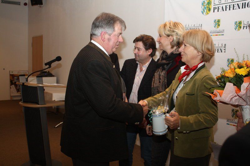 Landrat Martin Wolf, sowie die Landtagsabgeordneten Erika Görlitz und Claudia Jung und der BLSV-Kreisvorsitzende Florian Weiß bedankten sich für das jahrelange Engagement.