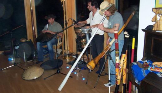 Besondere Klangerlebnisse bot das letzte Konzert des Jahres in der FreienPrivatZone. Die Rosenheimer Formation DIDGERIDOO24, die auch regelmäßig in den Salzheilstollen in Berchtesgaden auftritt, spielte in der Besetzung Bernhard „Börni“ Schmid, Didgeridoos, Samsala, Maultrommel und Hang, Norbert „Nobbl“ Moser, Didgeridoos und Wolfgang „Wolf“ Schiffl, Dabuka und Djembe famos exotisch auf.
