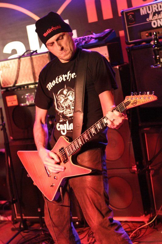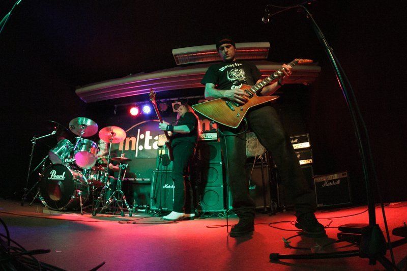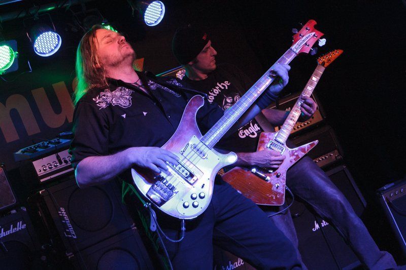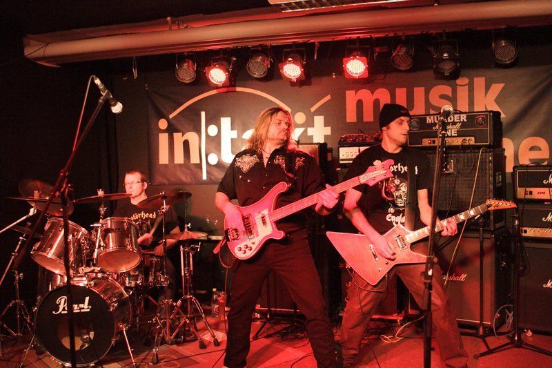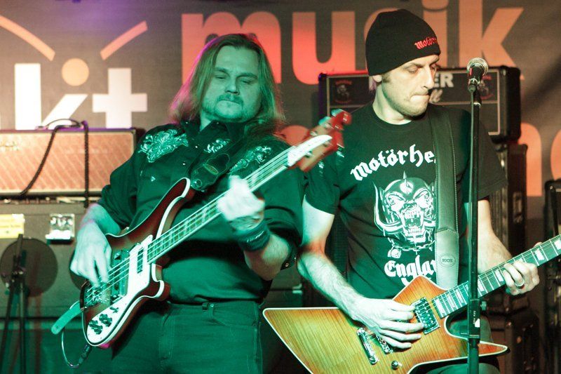 Mit einer kurzen Umbaupause wurde die Bühne für das Highlight des vergangenen Abends freigeräumt: Motörblöck! Die Band aus Sulzbach-Rosenberg ist ein Tribut an die Rockgröße „Motörhead“, die bei versierten Hardrockfans zum festen Musikrepertoire gehört. Auch den typischen Heavy-Metal-Umlaut (röck döts) haben die drei von Motörblöck übernommen. Die Umlaute fließen allerdings nicht in die Aussprache mit ein. Motörblöck steht seit über 17 Jahren auf der Bühne und liefert erstklassige Cover ab, die den britischen Vorbildern alle Ehre machen. Für den harten Sound am Bass, der als Rhythmusgitarre fungiert, sorgt Frontmann Helmut „Helm“ Roppert alias Lemmy. Das „Animal“ der Band ist Markus „Obstbaum“ Jobst mit Doublebass-Drills am Schlagzeug. An der Gitarre sorgt Rainer Leist dafür, dass das Publikum abrockt. Begrüßt wurden die Fans Motörhead-typisch mit „Good evening! We are Motörblöck and we play Rock’n’Roll!“. Helmut Roppert hat die perfekte Stimme für die Band, kraftvoll, den Kopf straight nach oben zum Micro gerichtet - zum verwechseln ähnlich mit dem Original Lemmy Kilmister. Markus Jobst überzeugt mit perfekten Wirbeln und steht als treibende Kraft hinter dem Schwergewicht Motörblöck. Hinter den Musikern steht eine hohe Wand aus Verstärkern und Boxen, bereit zum Vorstürmen und Durchpreschen!