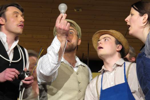 Er möchte unbedingt der erste im "Gai" sein, der s'Elägdirsche auf dem Hof hat. Der Stromer, gespielt von Stefan Haage, bringt deshalb „Licht“ ins Dunkel bzw. auf den Hof, auch wenn Kabel, Glühbirne und Schalter auf totales Unverständnis stoßen.