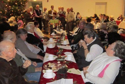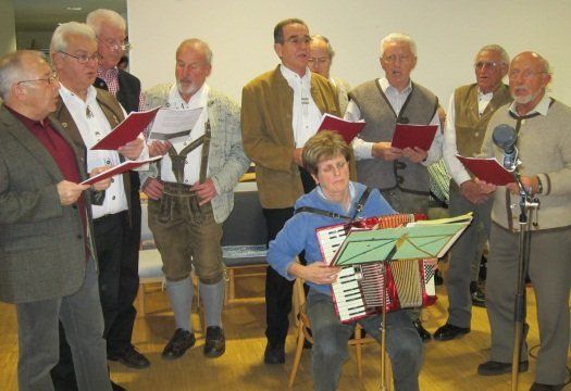 Die Männergesangsgruppe der Naturfreunde unter der Leitung von Elfriede Heger, die Musikerfamilie Sinner und ein Akkordeonspieler sangen und spielten traditionelle Weihnachtslieder und da sangen natürlich auch die Senioren gern mit.