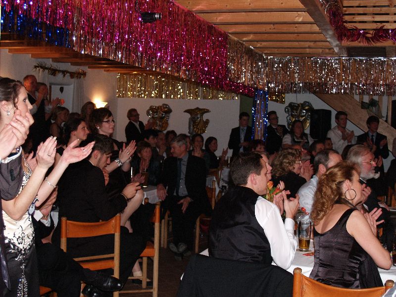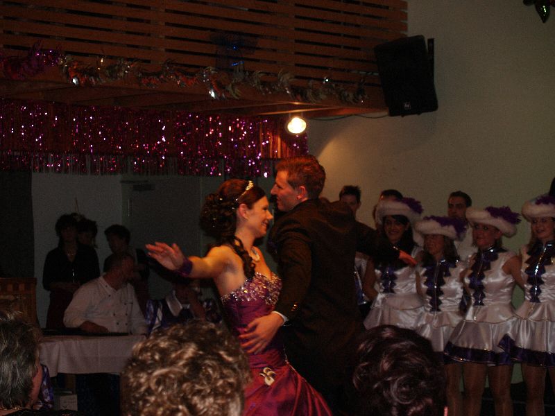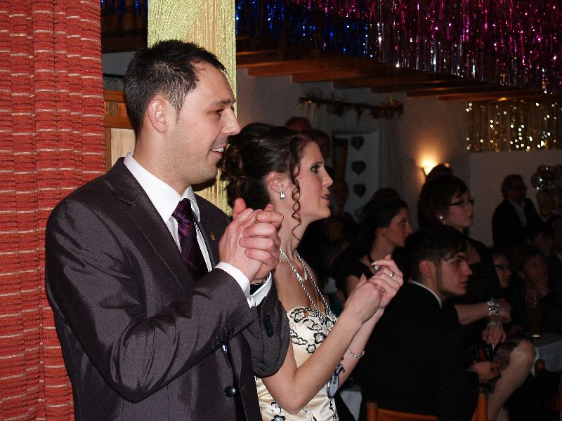 Bis auf den letzten Platz war der Saal des Gasthauses besetzt. Die Gäste, alle in festlicher Abendgarderobe, wie es sich für einen Schwarz-Weiß-Ball gehört, genossen sichtlich den unterhaltsamen Abend. Einer der Höhepunkte war der Eröffnungswalzer des Prinzenpaares. Prinzessin Alexandra I. im wunderschönen lila Ballkleid mit Prinz Andreas II. im farblich dazu abgestimmten Anzug absolvierten „ihren“ Walzer mit Bravour und ernteten vom Publikum tosenden Applaus. Ohne eine Zugabe ging gar nichts, aber auch darauf war das Prinzenpaar perfekt vorbereitet und begeisterte nochmals mit einem weiteren Tanz.