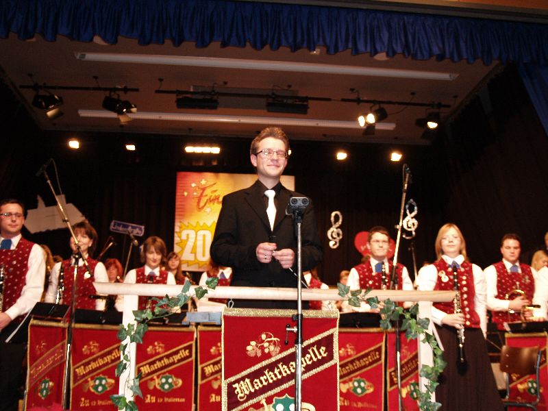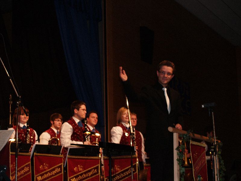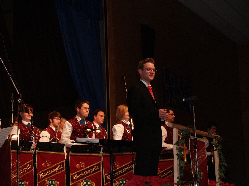 Die Moderation übernahm Andreas Bauer, der mit viel Witz und Charme das Publikum durchs Programm führte. In der ersten Hälfte des Konzertes servierte die Markkapelle, dirigiert von Thomas Linseisen, einen musikalischen Rundgang, der vom „Florentiner Marsch“, dem Konzertwalzer “An der schönen blauen Donau“ bis zu dem schottischen Lied „Highland Cathedral“ reichte.