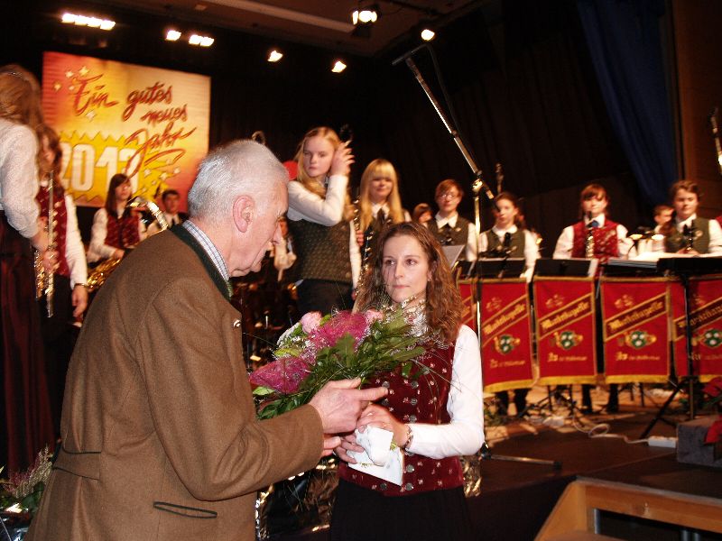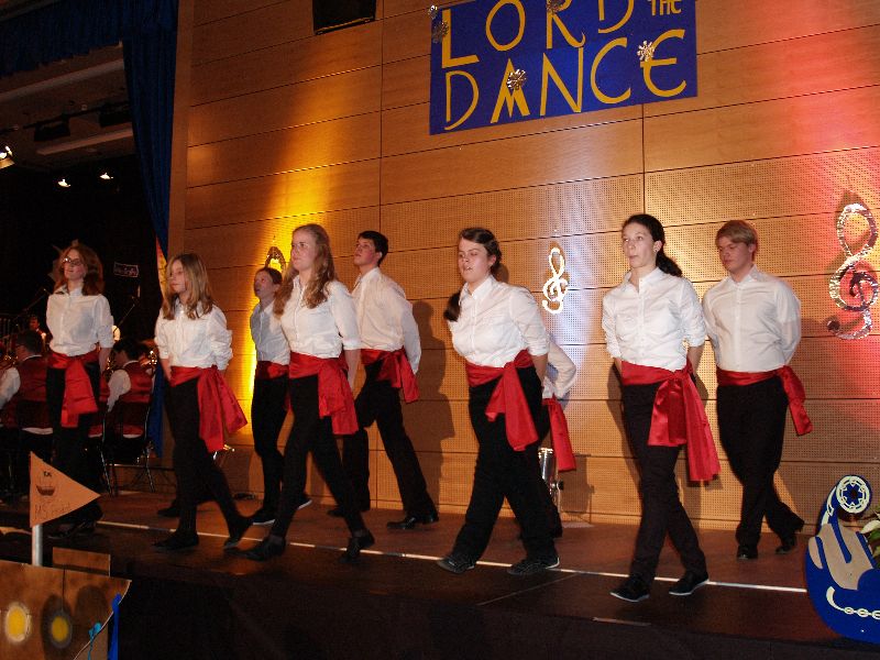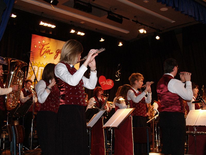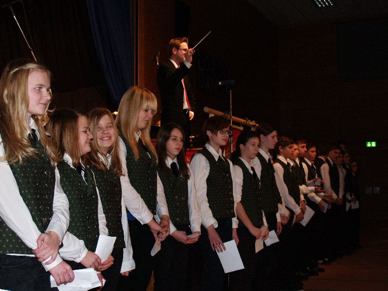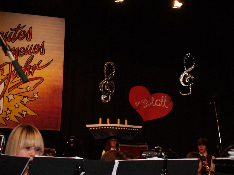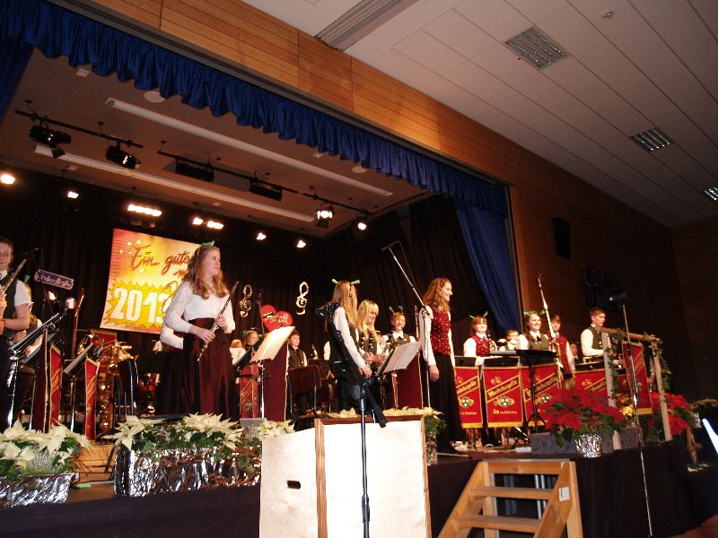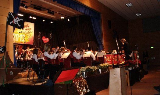 Danach ging es wieder weiter im Programm, die Jugendblaskapelle unter der Leitung von Verena Bauer zeigte ihr Können. Mit Filmmelodien von „Titanic“ und „Shrek“ faszinierten sie das Publikum und auch mit der aufwändigen Bühnendekoration gab es immer wieder etwas Neues zu sehen.