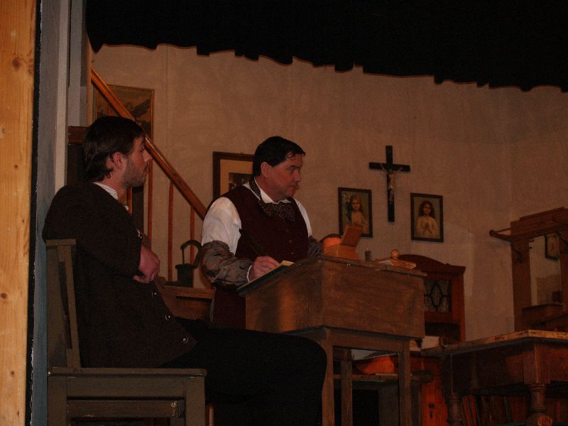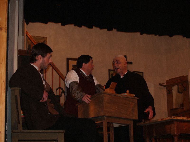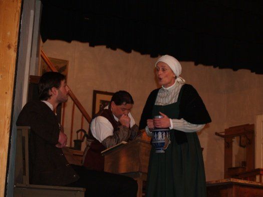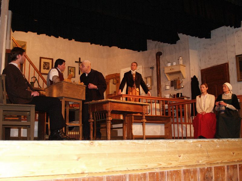 Die Theateraufführung in 3 Akten spielt in der Wohn- und Gerichtsstube des Richter Adam und allein das Bühnenbild ist schon sehenswert. Hier trifft also an einem Morgen der Dorfschreiber Licht den völlig zerschundenen Dorfrichter Adam an, der gerade versucht seine ungewöhnlichen Blessuren zu verarzten. Dieser erklärt, er sei gestürzt und habe sich am Ofen gestoßen. Dennoch muss Adam seinen Amtsgeschäften nachgehen und überdies wird ihm noch der Gerichtsrat Walter zur Inspektion angesagt. Im Gerichtssaal warten bereits Frau Martha mit ihrer Tochter Ev und dem Streitobjekt, einem zerbrochenen Krug.