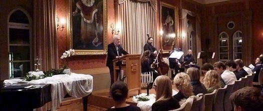 Die Schüler hatten bereits im Vorjahr, im ersten Semester ihres zweijährigen Seminars, einen beeindruckenden Augenzeugenbericht mit dem Holocaust-Überlebenden Franz Rosenbach gestaltet. In dieser Veranstaltung war das geschriebene Wort an der Reihe. Kulturreferent und Buchautor Rainhard Haiplik (Pfaffenhofen unterm Hakenkreuz) erzählte eindrucksvoll über die Begebenheiten zur Nazi - Diktatur in Pfaffenhofen. Auschwitz ist nicht irgendwo, auch in Pfaffenhofen gab es jüdische Mitbürger, und der braune Mob verschonte niemanden. In Nachbarschaft zum Müllerbräukeller und Pfaffelbräu in dem „die Bewegung“ ihren Lauf in unser Kleinstadt nahm, ist auf dem Platz hinter der Stadt-Pfarrkirche ein Denkmal für die Opfer des nationalsozialistischen Terrors in künstlerischer Bearbeitung. Bluthochzeiten mit Paaren aus ganz Deutschland wurden in eben diesem Rathaus-Saal, in dem an diesem Abend das Gedenken stattfand, abgehalten. Die Spuren sind noch frisch, 70 Jahre danach, es ist gut, wenn Schüler einer 12. Jahrgansstufe die Erinnerung bewahren. Es waren unsere Väter, Großväter und Urgroßväter, die Zeitzeugen werden knapp, Geschichtsklitterung gab es genug. Der Holocaust, sprich die systematische Vernichtung eines ganzen Volkes, war im Rassenwahn der „Ariosophen“ begründet, sollte mystisches Mittel zur Rückzüchtung in ein reines Volk sein. Der Mensch mit seiner ganzen Vielfalt war nichts, die Rasse zählte. In Zeiten von Genmanipulationen eine große Aufgabe für Ethik und Kultur, dem Thema ein Gesicht zu geben.