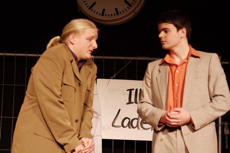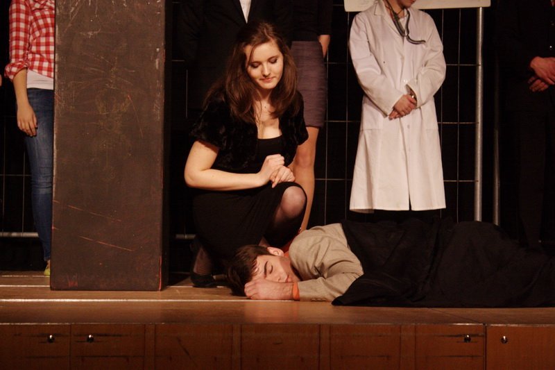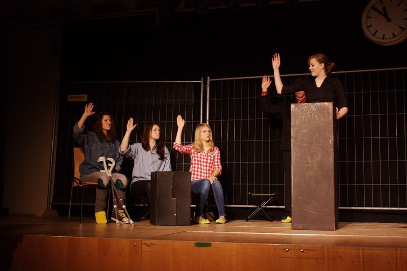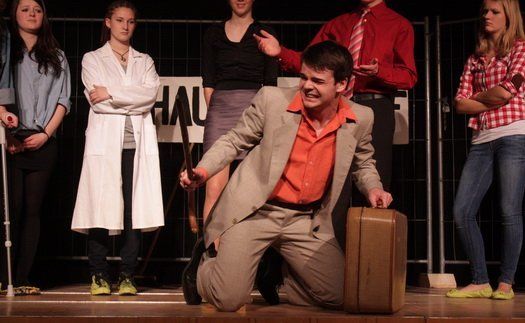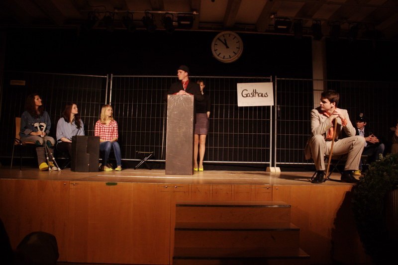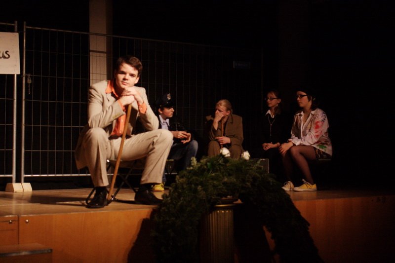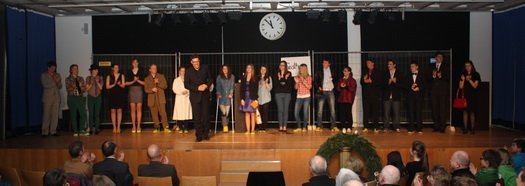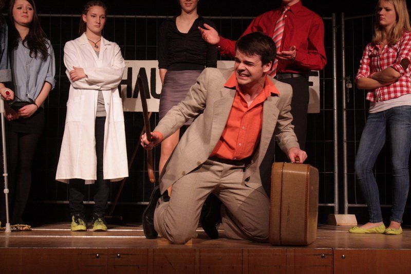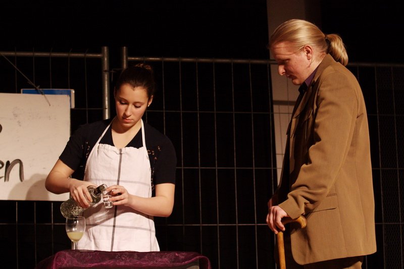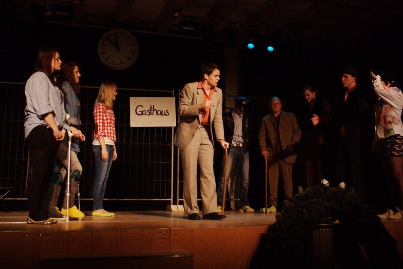 „Wir haben uns ganz bewusst für ein relativ spartanisches Bühnenbild entschieden“, so Marius Lubnow, „denn das Schauspielerische sollte im Vordergrund stehen.“ Und diese Leistung war wirklich beeindruckend. Perfekt setzten sie den schwarzen Humor von Dürrenmatt um, dennoch erzeugten sie gerade durch die schauspielerische Leistung beim Publikum auch ein beklemmendes Gefühl. Insgesamt eine absolut gelungene Inszenierung.