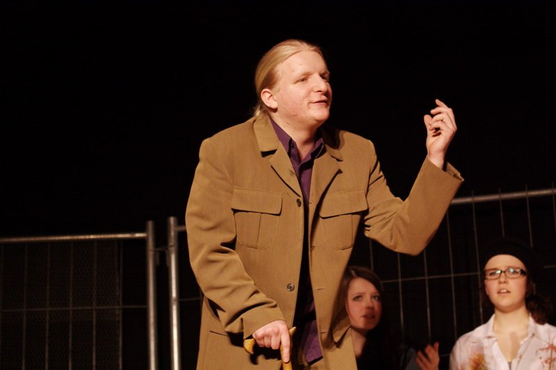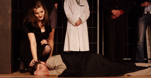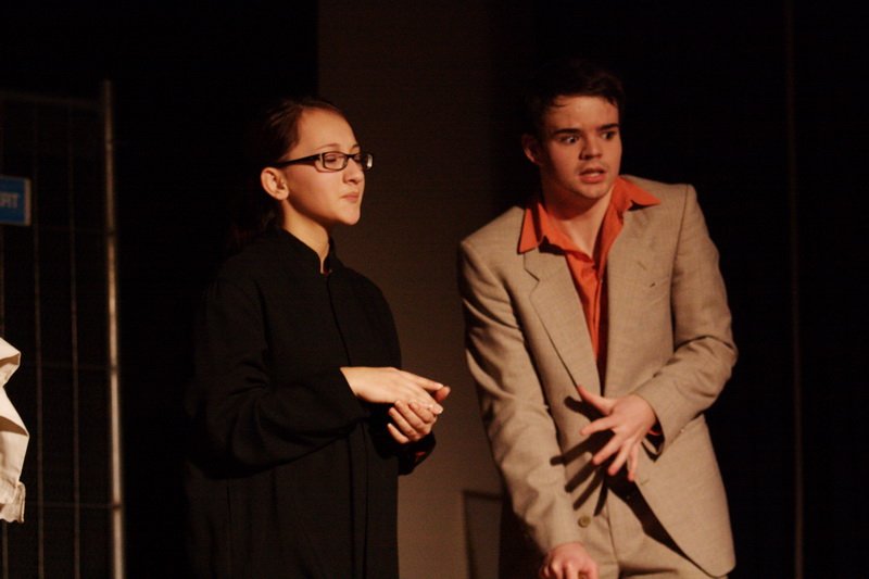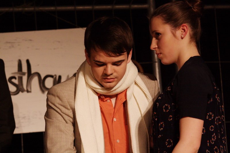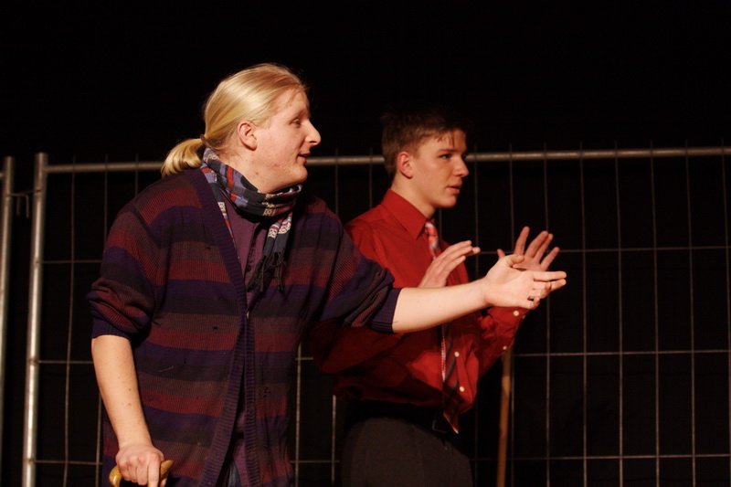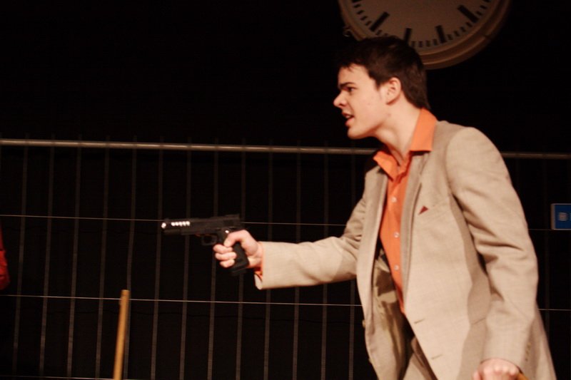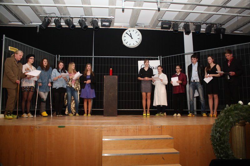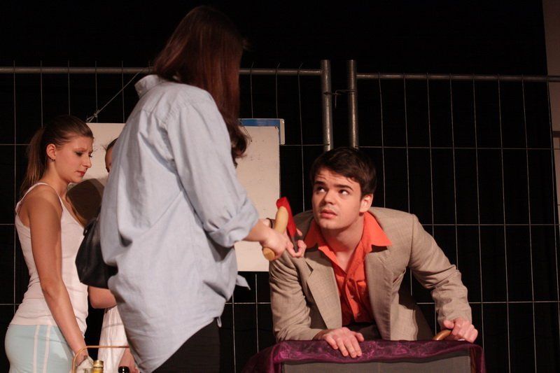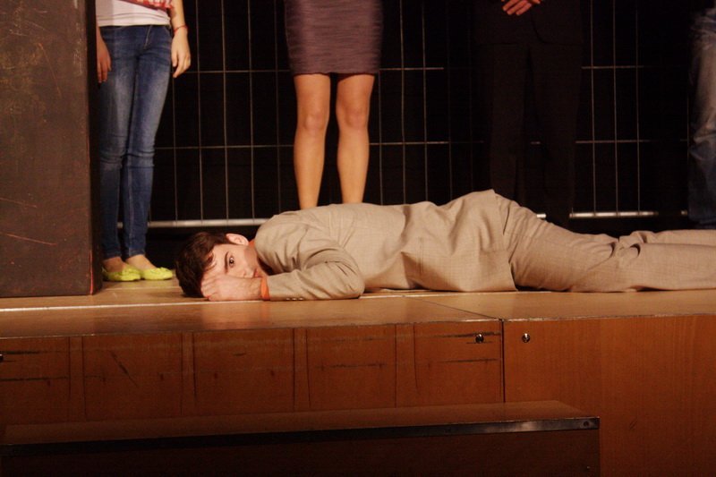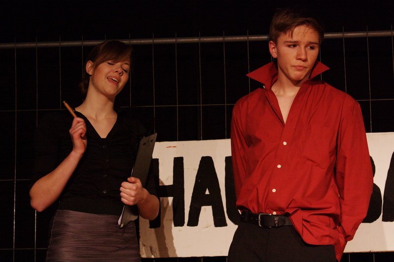 „Wir haben uns ganz bewusst für ein relativ spartanisches Bühnenbild entschieden“, so Marius Lubnow, „denn das Schauspielerische sollte im Vordergrund stehen.“ Und diese Leistung war wirklich beeindruckend. Perfekt setzten sie den schwarzen Humor von Dürrenmatt um, dennoch erzeugten sie gerade durch die schauspielerische Leistung beim Publikum auch ein beklemmendes Gefühl. Insgesamt eine absolut gelungene Inszenierung.