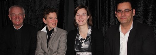 Die Gruppe 'Lesezeichen', das sind Lena Kettner, Nora Seiler, Lorenz Kettner und Christian Weigl. Seit mehr als 10 Jahren nehmen sie sich jeweils eines Themas an und durchstreifen die Literatur und das Zeitgeschehen unter diesem Aspekt. Mal nachdenklich, dann wieder kritisch, auch manches Mal tiefgründig und ganz häufig äußerst humorvoll: so setzt sich das Repertoire der Lesung zusammen. "Wie die Zeit vergeht" war das diesjährige Motto und wenn man sich die Autoren der vorgetragenen Textpassagen betrachtet, dann ist die Lesung an sich schon eine Reise durch die Zeit. Von Hölderlin über Fontane zu Michael Ende unter Einbeziehung von Zitaten und Aphorismen zeitgemäßer oder historischer, bekannter oder unbekannter Personen - alles und jedermann setzte sich mit dem Thema Zeit unter seinem jeweiligen ganz persönlichen Gesichtspunkt auseinander.