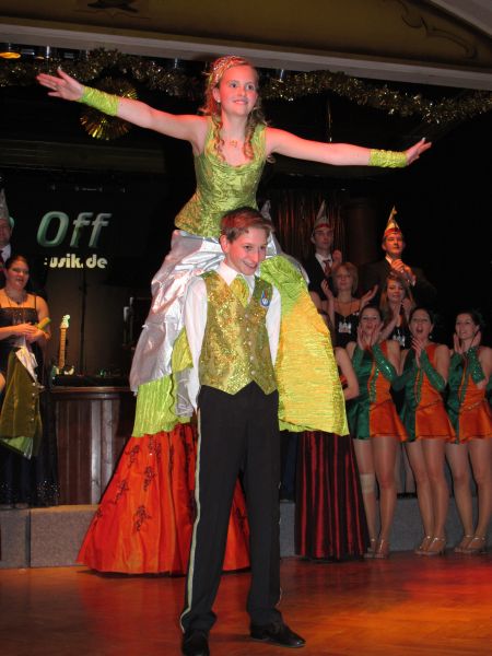 Auch die Narrhalla hatte sich sehr bemüht, etwas Abwechslung in diesen Ball zu bringen, und hat extra ein Sonderprogramm zusammengestellt. Es tanzten zwar wie gewohnt die Garde und die beiden Prinzenpaare Simone I. und Florian II. und Sabrina I. und Maximilian I., aber in einer ganz anderen Zusammenstellung, und das Funkenmariechen Jenny trat diesmal schon im Standardteil auf.