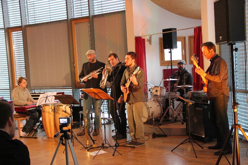 Konzert am Sonntagnachmittag? Das ist wohl was für das Seniorenheim, oder? Weit gefehlt! Jazzrock, Funk, Soul, alles mit südamerikanischen Salsa und Bossa Nova Rhythmen unterlegt. Das passt, geht ins Ohr, lässt die Beine wippen und ist anspruchsvoll. Die Band besteht aus Alberto Barreira (Saxophon, Querflöte und Gitarre), seinem Sohn Gabriel Barreira (Gesang und Gitarre), Mathias Bublath (Keyboard), Paulo Camargo (E-Bass), Florian Sagner (Trompete) und Geraldo Müller (Schlagzeug).