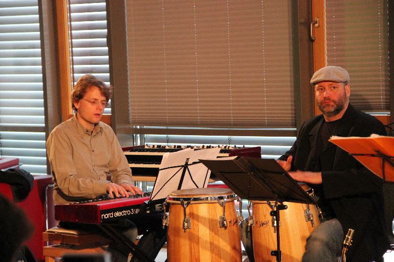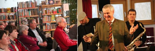 So um die 50 Zuschauer haben den Sonntagnachmittag-Kaffee vorgezogen und sind in die Gemeindebücherei gekommen. Bürgermeister Heinrich begrüßte Publikum und vor allem die Musiker; bereits 2010 gab sich Barreira die Ehre in der sich immer mehr zum Geheimtipp mausernden Kulturwerkstatt Gemeindebücherei. "Net vui, aber hui" möchte man meinen, denn die Qualität stimmt immer bei den verpflichteten Bands.