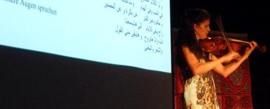 Barbara Uhl begleitete in der ihr eigenen Art, musikalisch und tänzerisch, das Geschehen auf der Bühne. Die für mich schönste Performance war eine Geschichte über die Angst, die beide Protagonisten über die Bühne schlendernd, in ihren Muttersprachen vortrugen. Hier verschmolzen die Welten, nichts war sich fremd. Im mehr als voll besetzten Theatersaal war es „muksmäuschen“-still bei dieser teilweise recht ungewöhnlichen Vorstellung. Ein weiterer Anfang ist gemacht, die arabischen und persischen Geheimnisse bleiben geheim, die hervorragenden deutschen Übersetzungen aber blieben im Ohr. Ich würde sie gerne gedruckt lesen können.