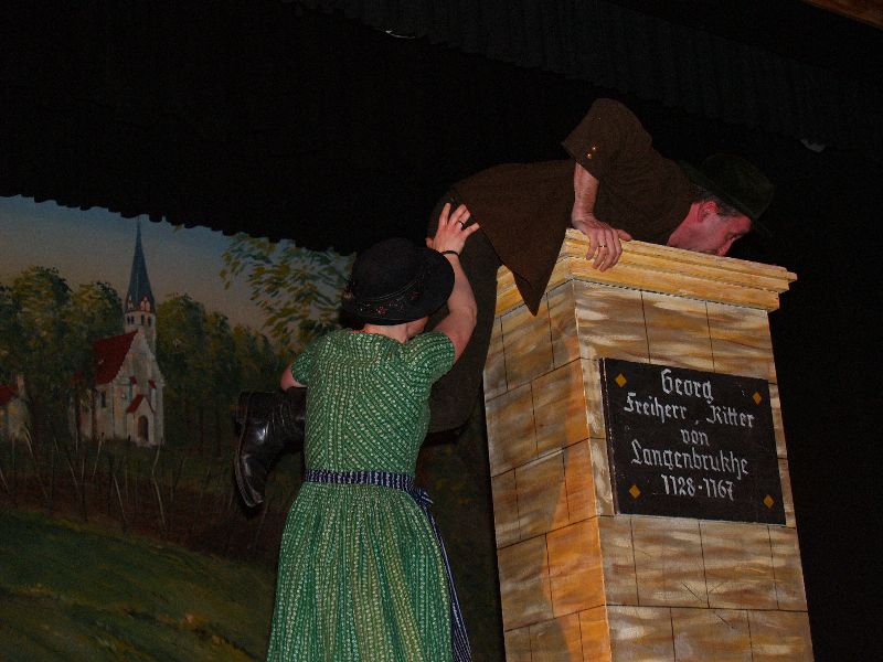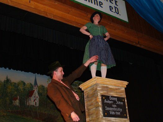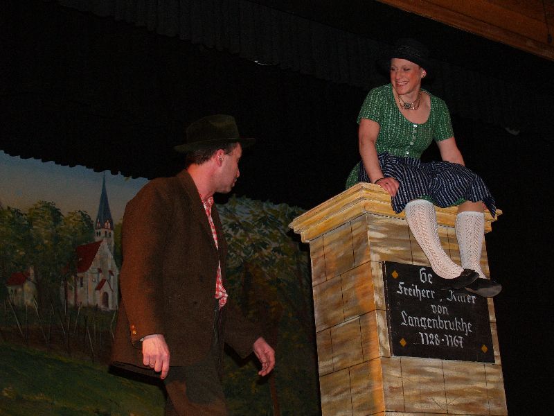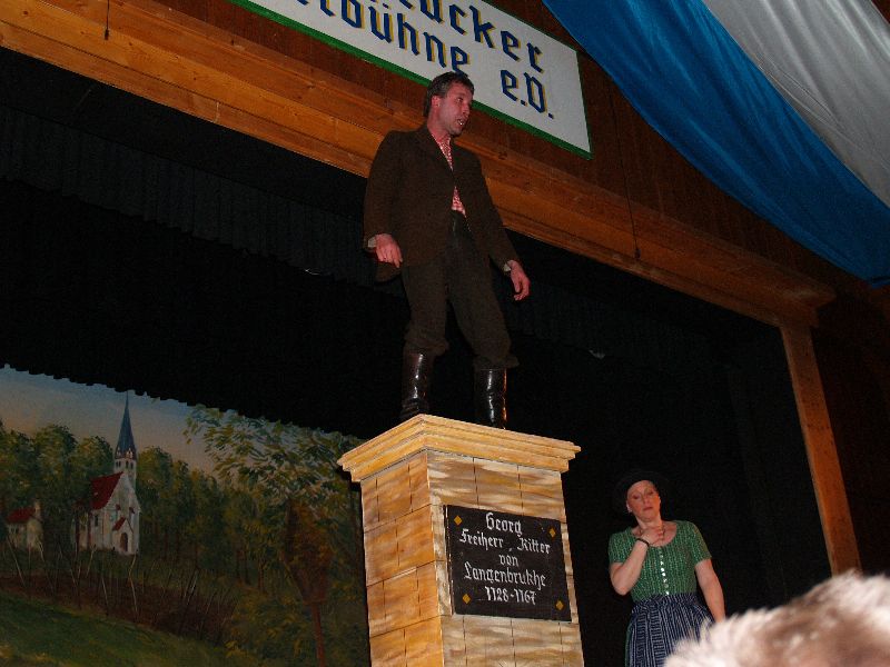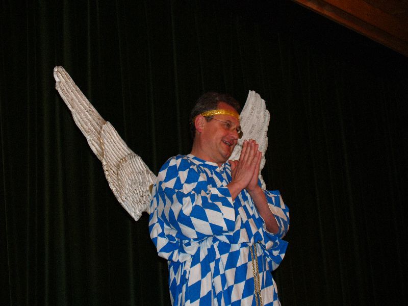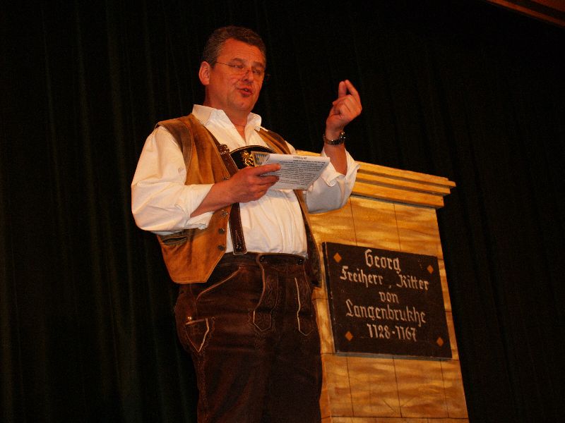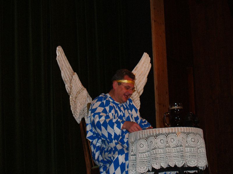 Fastenzeit ist Starkbierzeit! Zu dem süffigen schwarzen Bier gehört auch gute Unterhaltung, und für die ist in Langenbruck immer gesorgt. Die Reichertshofener Musikanten unter der Leitung von Christian Hofer sorgten für eine bayrische, musikalische Einstimmung. Mit lustigen Sketchen wie „Zimmerbestellung“, „Das Rendezvous“, „Das lebendige Denkmal“, „Ein Frühstücksgespräch“ oder „Der Firmling“ hatten die Zuhörer viel zu lachen. Vielleicht stimmte auch der Sketch „Pizza kaufen im Jahr 2050“ etwas nachdenklich, denn wer will schon ein gläserner Kunde sein. Der junge Gabriel Seidl mit seiner „Steirischen“ und seine Schwester Antonia waren wieder der Renner, und brachten das Publikum mühelos zum Mitsingen. Als Moderator fungierte wieder Josef Reichart, der zugleich den Engel Ambrosius spielte, und Neuigkeiten aus der Politik nach "oben" meldete. Beispielsweise Bürgermeister Herkers Schwierigkeiten mit seinem Problempoller, und das „Opferlamm“ Schäch ist wieder auferstanden. „Ja lebt denn der Schäch no? Ja, er lebt no!“