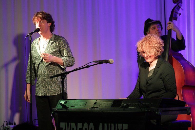 „Ich war vor Jahren mit einer Tangogruppe in den USA, und habe mich dort sofort in diese Musik verliebt“, erklärt Zydeco Annie. Sie hat den Spirit aufgesogen und brachte ihn mit nach Deutschland. Wie sehr sie diese Musik berührt hat, das konnte auch das Wolnzacher Publikum spüren. Ob beim flotten Two-Step oder beim romantischen Walzer, schon bei den ersten Tönen der spritzigen Südstaaten-Musik sprang der Funke über. Am Piano-, Kopfakkordeon oder Klavier, Zydeco Annie traf den Ton der Zuhörer, zusammen mit dem klassischen Zydeco-Waschbrett, Kontrabass, Schlagzeug und Gitarre nahm sie die Gäste mit durch die unendliche Vielfalt Louisiana.