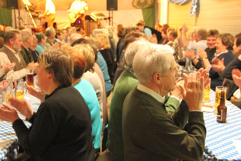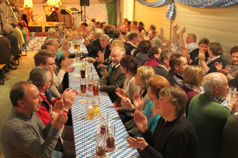 Für den musikalischen Aufgalopp sorgten zunächst d'Lauterbacher, während die Besucher die ersten Halben des Klosterbräu-Starkbiers genossen und sich den wohlschmeckenden Rollbraten - angeliefert vom Mitterscheyrer Gasthaus Hoiss - einverleibten. So hätte die Stimmung von Anfang an nicht besser sein können. Nicht nur die Gemeinderepräsentanten warteten zunehmend gespannter auf die bevorstehende kabarettistisch aufbereitete Zusammenfassung Scheyrer Geschehnisse der jüngeren Vergangenheit.
