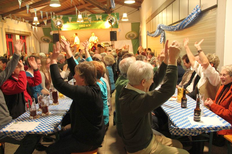 Lange geht die Fastenzeit ja nicht mehr; kurz vor Toresschluss sozusagen hat auch Scheyern sein Starkbierfest gefeiert. Schützenmeister Gerhard Eisinger und sein Veranstaltungsteam haben ja nach den überaus erfolgreichen Festtagen anlässlich der Fahnenweihe im vergangenen Jahr schon Erfahrung im Veranstalten von Volksfesten. So war es auch nicht verwunderlich, dass sie aus dem Schießstand im Schützenheim einen gemütlichen und stimmungsvollen Veranstaltungsraum zauberten, in dem rund 180 Besucher einen vergnüglichen und feucht-fröhlichen Abend erleben durften.