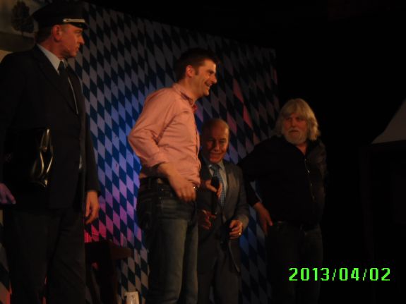 Danach kam Michael Altinger. Spätestens dann tauten auch noch die Letzten auf und amüsierten sich prächtig über Themen wie Supermamis mit ihrem Projekt Kind oder moderne Essgewohnheiten und Ingwerwahn. Sein Kollege Christian Springer alias Fonsi, mit dem er ab sofort den Schlachthof im bayerischen Fernsehen moderieren wird, trat in gewohnt "grantiger" Manier auf. Bis ins kleinste Detail wusste er die Verfehlungen der Menschen zu bereden und kritisieren. Egal ob Papst oder Pferdefleisch, Fonsi konnte zu allem seinen Senf abgeben. Am Ende des Abends ernteten die Künstler versammelt auf der Bühne nochmals einen großen Applaus für ihre aberwitzigen Darbietungen.
