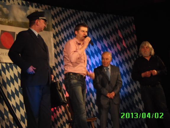 Als dann die Kabarettisten loslegten, gab es für die Zuschauer kein Halten mehr. Den Anfang machte der bayerische Rebell mit vollbärtigem Gesicht, Sepp Raith. Er besang u.a. die Schönheit und Pracht des bayrischen Vaterlandes, das das Herz einfach zum Bumpern bringt, den bayerischen Mann als "Krone der Schöpfung" oder aber seine Gedanken zu Utopien.