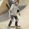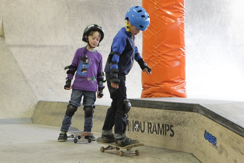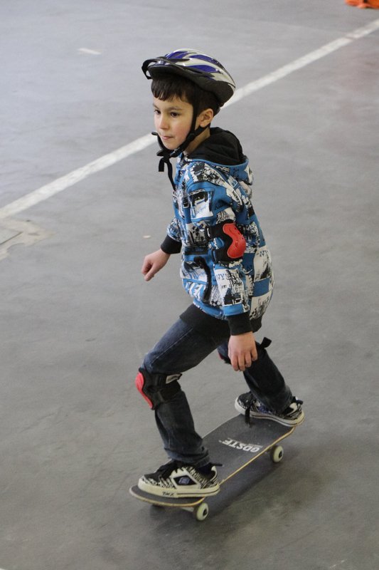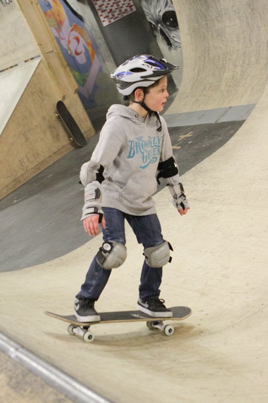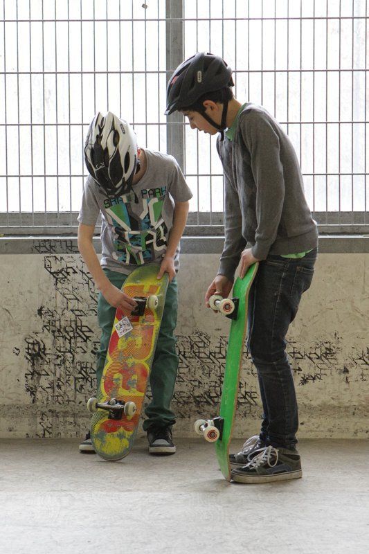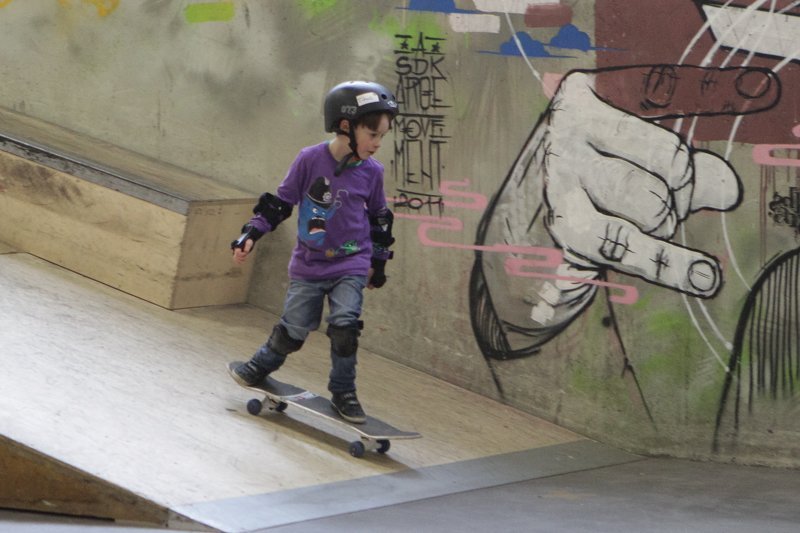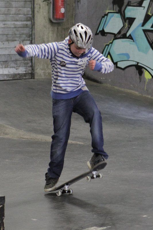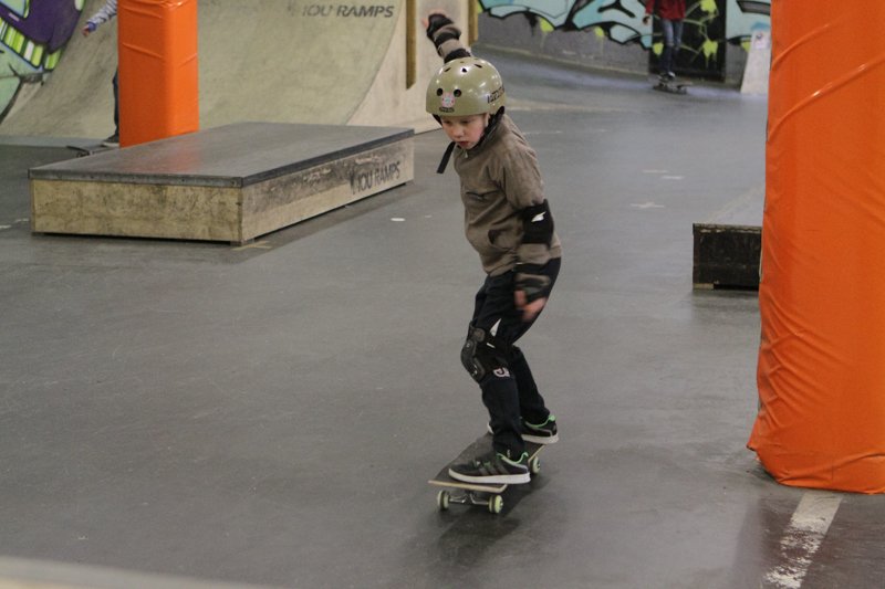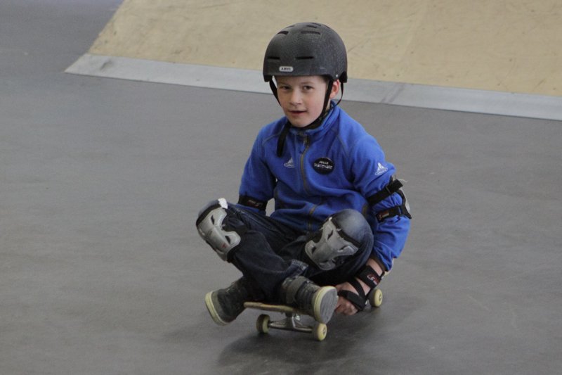 Zwischen sieben und 14 Jahren waren die Sprösslinge alt, die in dieser Woche viel über den Funsport lernten. So galt es zunächst das sichere Fahren und einen festen Stand auf dem Brett zu erlernen, bevor es auf die sogenannten „Obstacles“ ging. Darunter versteht man die Elemente eines Skateparks wie z.B. Quarterpipes. Unter den Kindern waren einige, die etwas mehr Erfahrung hatten und somit schon große Quarterpipes befuhren. Doch hier musste sich keiner langweilen, denn es gab zahlreiche Rampen, die man hoch- und runterfahren konnte. Niemand sah sich gezwungen, eine steile Rampe hinunterzufahren, wenn man sich nicht traute. Da man sich bei dem ganzen Spaß auch leider sehr leicht verletzen kann, bestand natürlich Schutzpflicht mit Arm- und Beinschonern sowie Helmen. Für diejenigen, die sich schon an Tricks wie den Kickflip (Board dreht sich einmal um die Längsachse) oder den Ollie (der Sprung mit dem Skateboard, die Grundlage für viele Tricks) herantrauten, gab Chris Rieger viele Tipps und Tricks. Denn solch ein Flip erlernt man nicht einfach von heute auf morgen – hier steckt viel Übung und Körperbeherrschung dahinter.