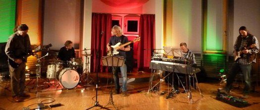 Tangerine Dream fällt mir sofort beim ersten Stück ein, frühe Pink Floyd, Popol Vuh all die feine, abgehobene, transzendierende Musik meiner Jugend, die 70ziger und 80ziger plus indischem Beigeschmack. Klangwolken schweben durch den Raum, der Bass führt, die Trommel gibt die Erde, das Keyboard geht immer wieder langatmig dazwischen, die Gitarren erzählen die Geschichten. In der Band herrscht „Rockverbot“ bis auf ein Stück, das dann auch noch bedeutungsschwanger als „Revolution“ verkauft wird. Die Fünf sind beim besten Willen keine „Rampensäue“, da geben sich eher „die Ruhigen“ ein Stelldichein mit sanften Arrangements und einem Spritzer Humor. Bluesiges auch als Gesang kommt direkt von Johannes Daum an den Keyboards. Keine Bläser, kein technisch abgefuckter, digitaler Synthesizer stören die organische Musik, alles „handgemacht“, sogar am analogen Bassverstärker sind noch Röhren zu sehen.