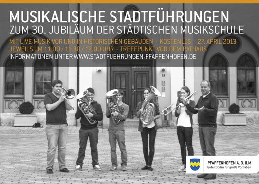 Zur Feier des 30. Jubiläums der Städtischen Musikschule Pfaffenhofen veranstaltet die Musikschule zusammen mit der Wirtschafts- und Servicegesellschaft am Samstag den 27. April eine Musikalische Stadtführung.