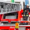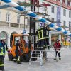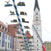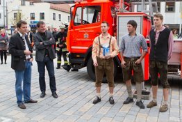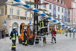 Zeit is‘ wor’n. Der Mai bricht herein. Traditionell wird am oberen Hauptplatz der Maitanz des Trachtenvereines aufgeführt, bis es endlich zum Aufstellen des Maibaumes kommt. Doch diesen haben die Pfaffenhofener leider nicht retten können: gestohlen wurde er heuer von der Katholischen Jugend. Für die Auslieferung forderten sie gestern Abend von Bürgermeister Thomas Herker ein Spanferkel und ein Fass Bier. Den Pfaffenhofener Krug für die Halbe haben sie von Herker schon bekommen. Danach hieß es: „Vorsicht, bitte zurücktreten!“ Es ging ans Aufstellen des Maibaumes gegenüber dem Landratsamt. Zwei Feuerwehrfahrzeuge kamen zum Einsatz – eines davon das Hubrettungsfahrzeug der FFW PAF mit einer Drehleiter bestückt. Von dieser wurde die Arbeitsbühne abmontiert, um daran eine Schlaufe mit Rolle zu befestigen, die das Zugseil zum Maibaum ausrichtete.