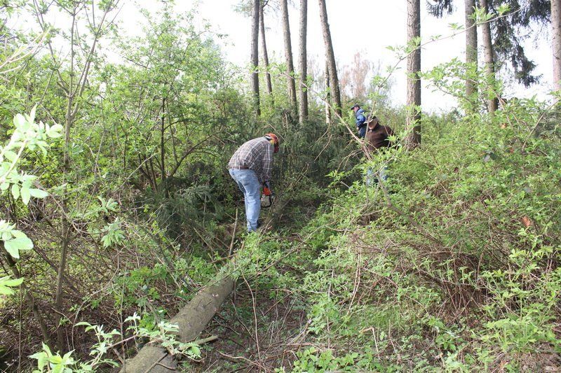 Die Sonnenstrahlen spitzten gerade über die ersten Baumkronen, da herrschte auf dem Vereinsgelände schon reges Treiben. Motorsägen, Steigeisen und jede Menge Werkzeug zum Entrinden wurden ebenso wie ein Träger gutes bayrisches Bier eingepackt. Dann machte sich die Mannschaft um Vereinsvorstand Martin Stockmaier auf den Weg nach Schweitenkirchen.